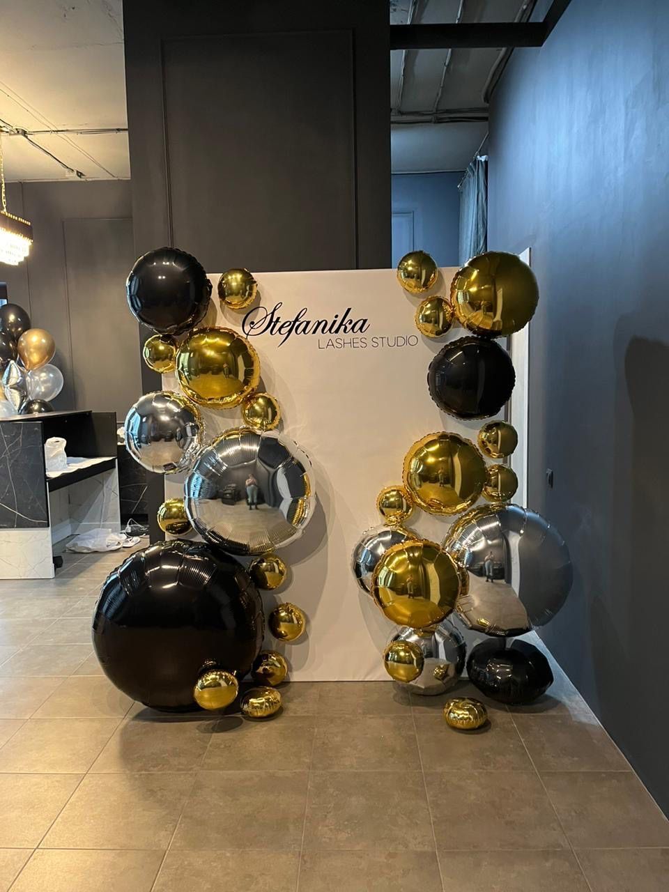 Баннер и шары оставляем клиенту, забираем только металлический каркас.