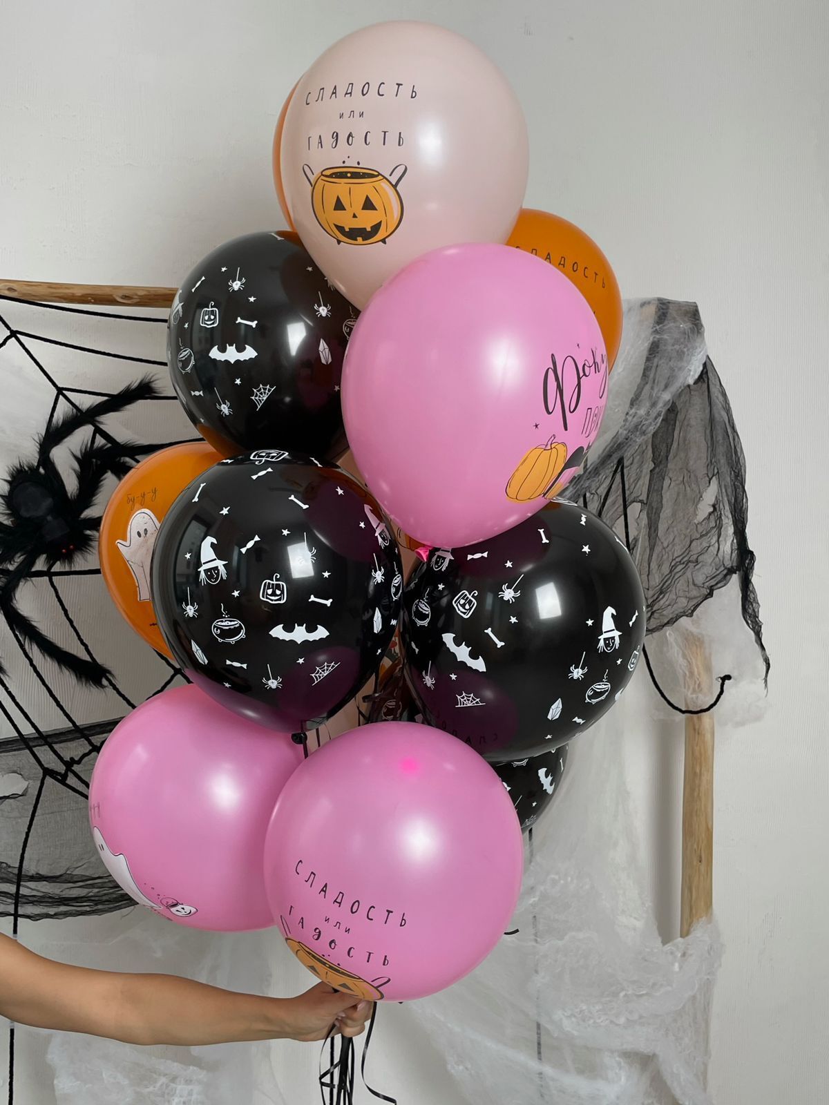 Фонтан из 13 шаров с дизайном на Хэллоуин