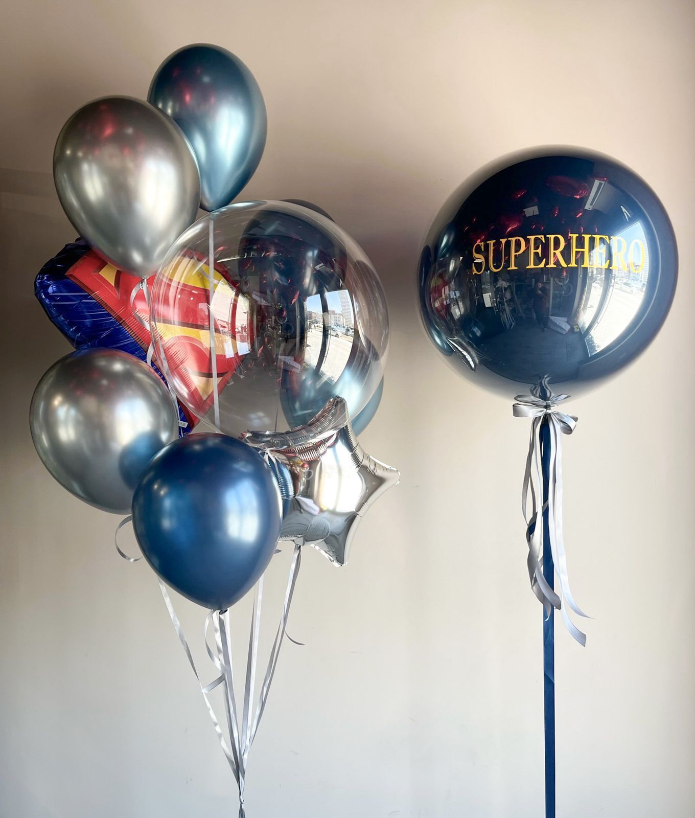 4 хром, 2 обычных, звезда, баблс 50 см, Значок супермена