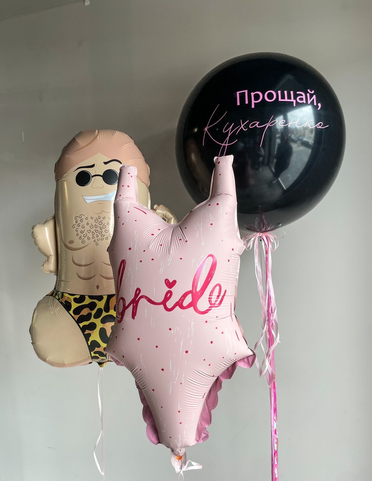 Двойной шар на девичник, внешний шар с девичьей фамилией, внутри сердце 45 см с новой фамилией