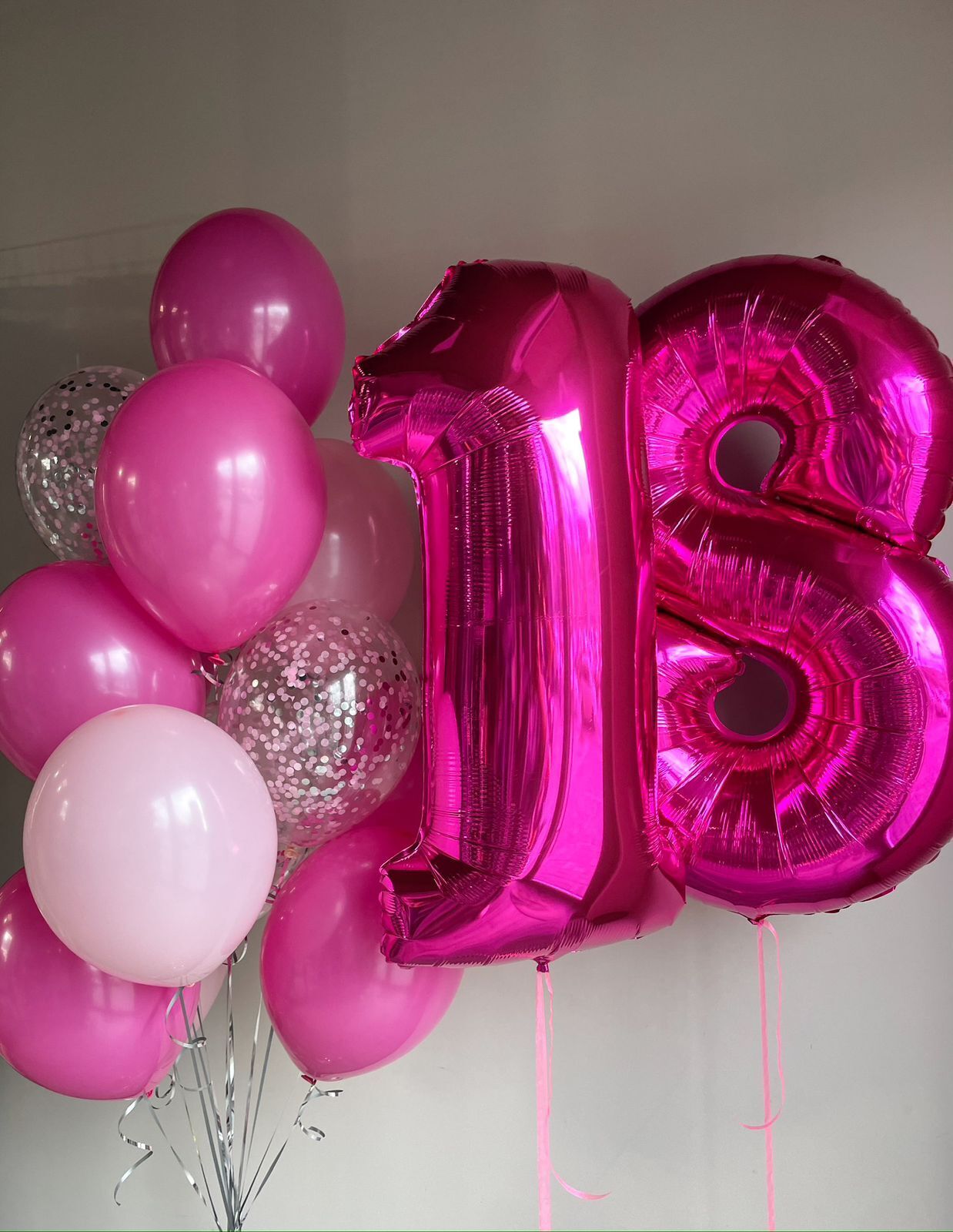 Фонтан из 7 обычных шаров и 3 шаров с конфетти