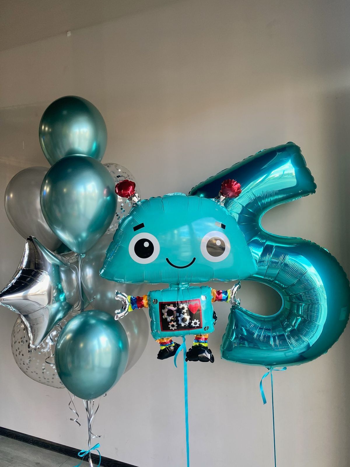 Фонтан 4 хром, 3 обычных, 2 с конфетти, звезда