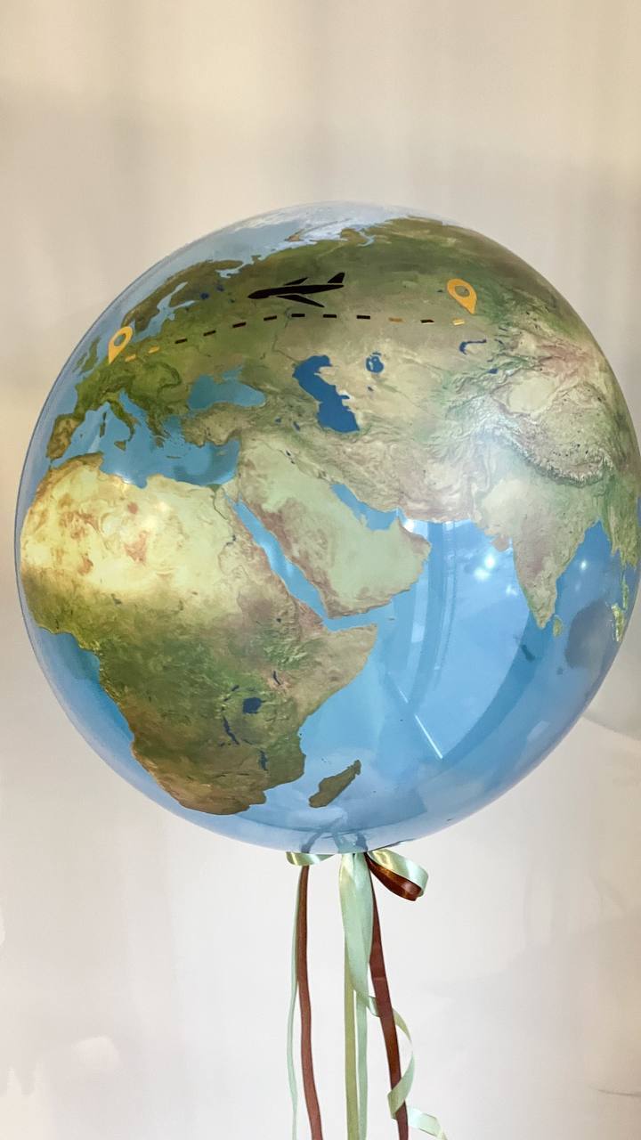 Шар Земля с картой путешествия.