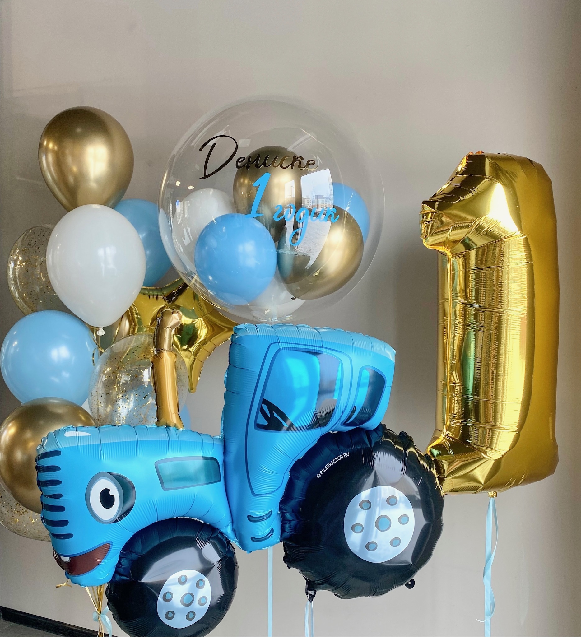 Бабл с шарами внутри и надписью