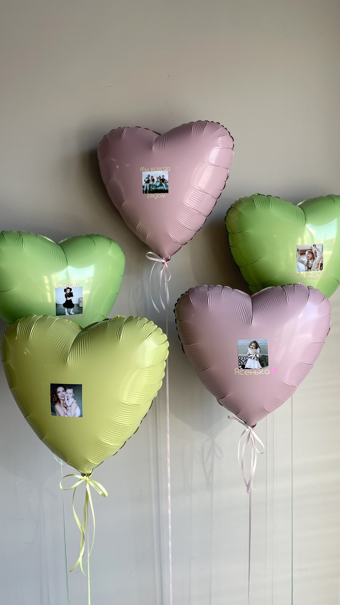 5 сердец с фото и надписями на индивидуальных грузах