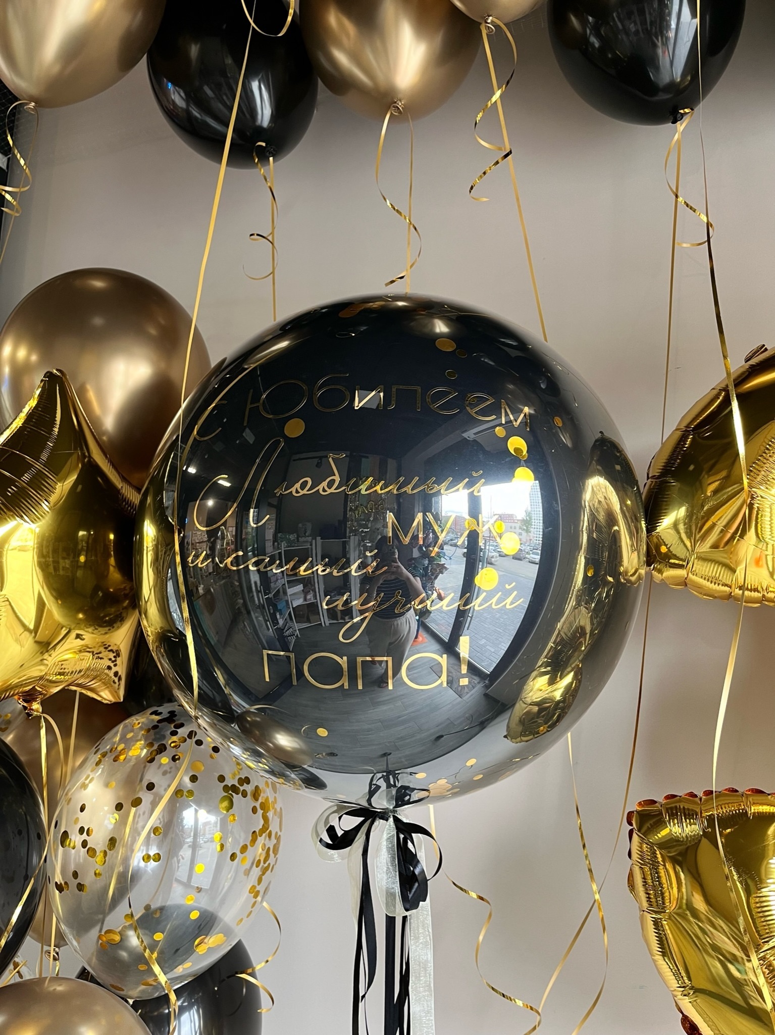 Фонтан 10 шаров (3 черных, 3 с конфетти, 3 хром, звезда)