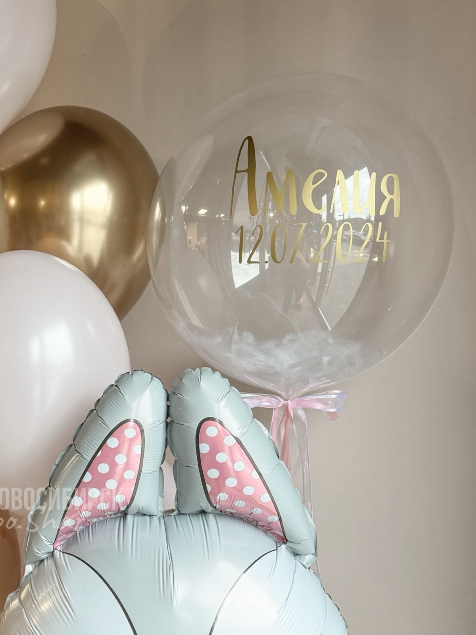 Бабл с перьями и надписью