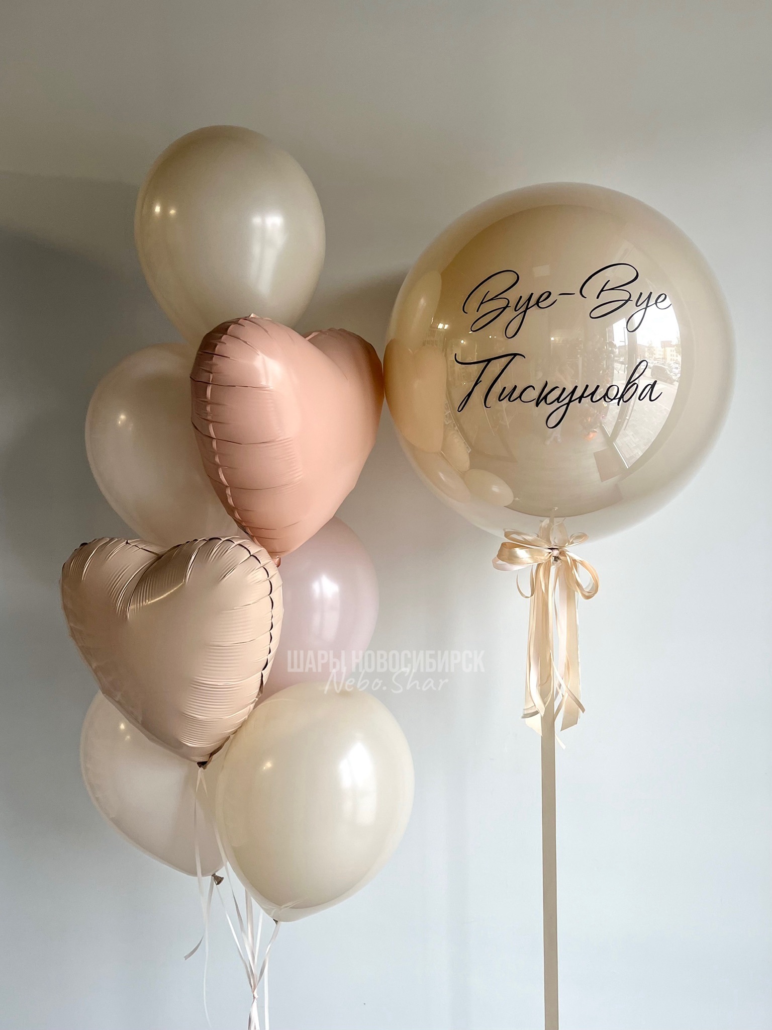 Фонтан из 7 шаров (1 сердце тон, 1 сердце румяна, 2 пыльная Роза, 3 белый песок)
