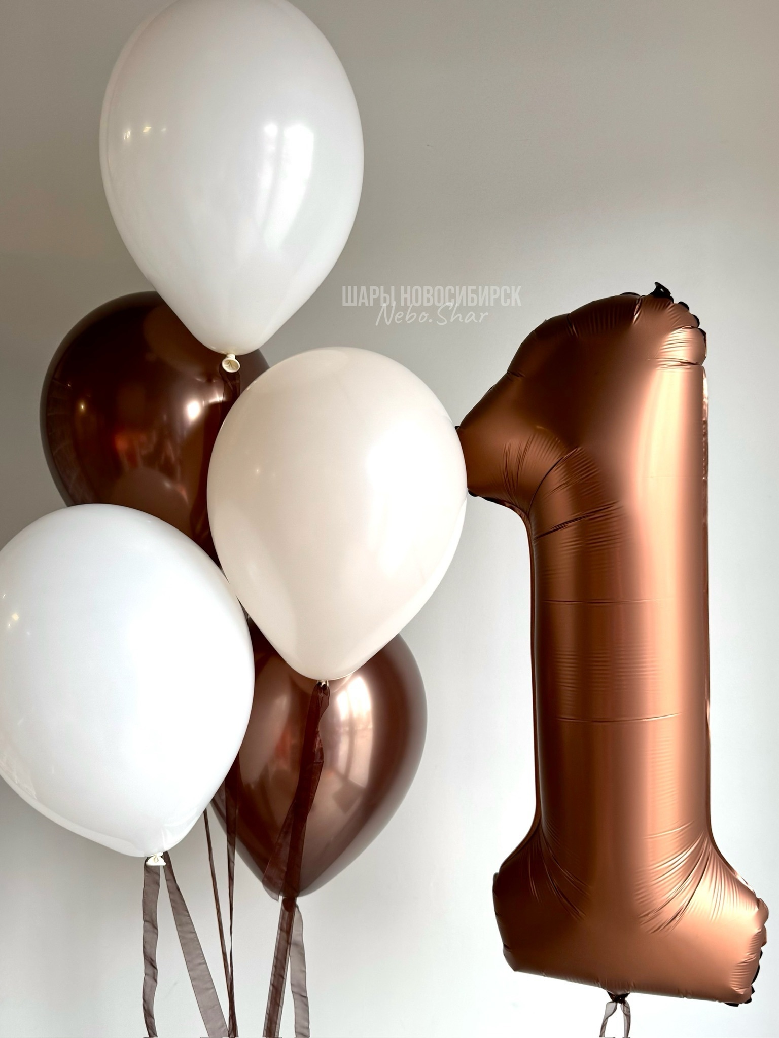 Фонтан из 5 шаров (2 хром трюфель, 1 крем, 2 белых)