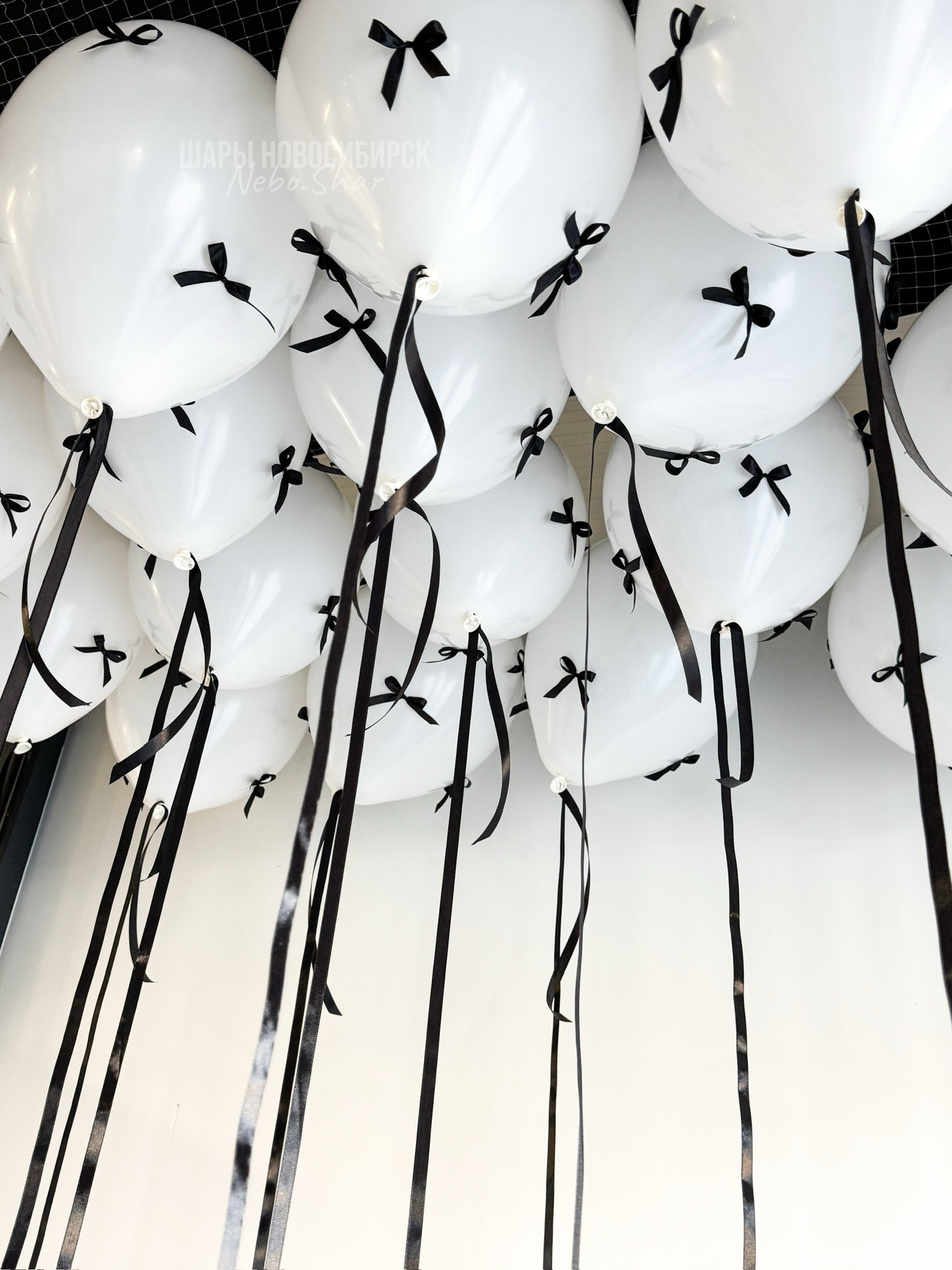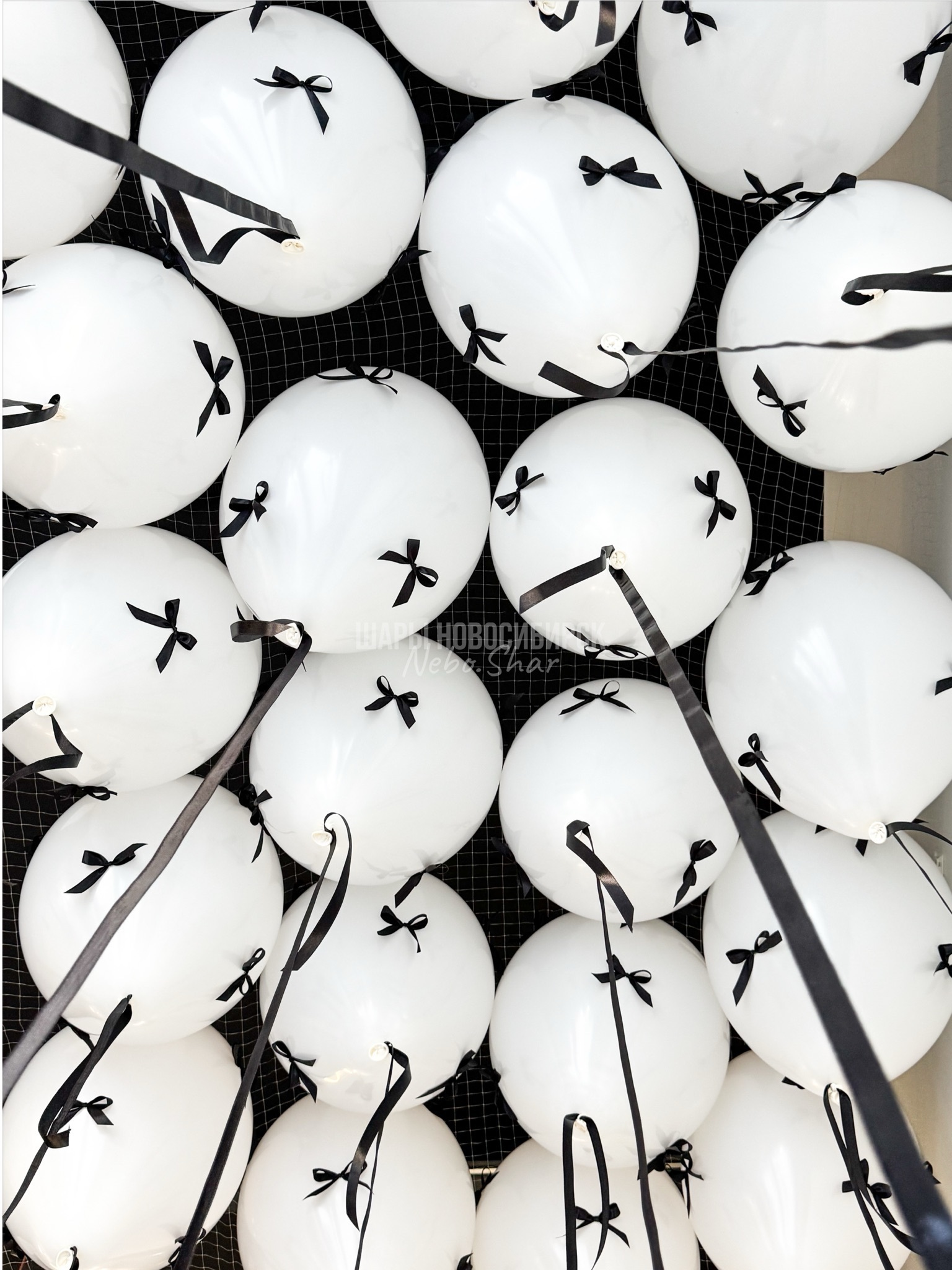 25 шаров под потолок с бантиками по всему шару