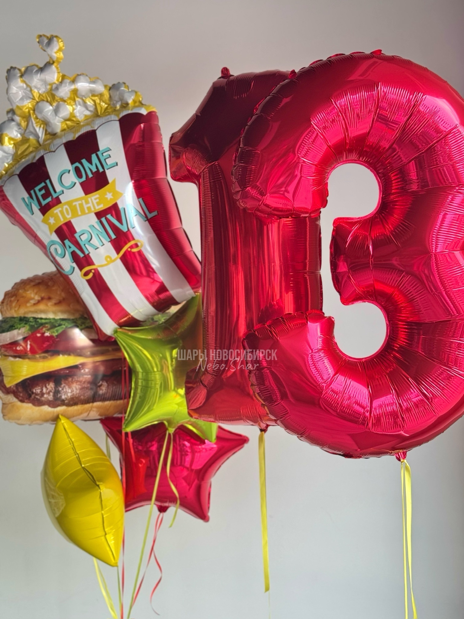 Фонтан (фигурка «Попкорн, фигурка «Чизбургер», звезда желтый, звезда красный, звезда лайм)