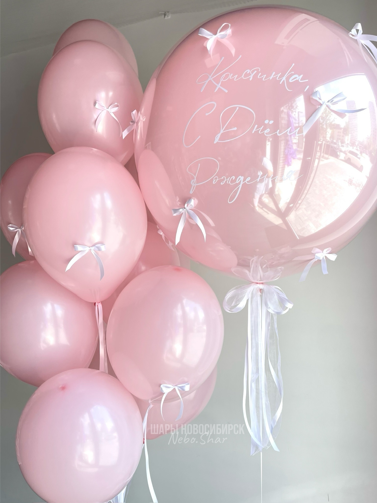 Стеклянный шар бабл гам с надписью и бантиками по всему шару