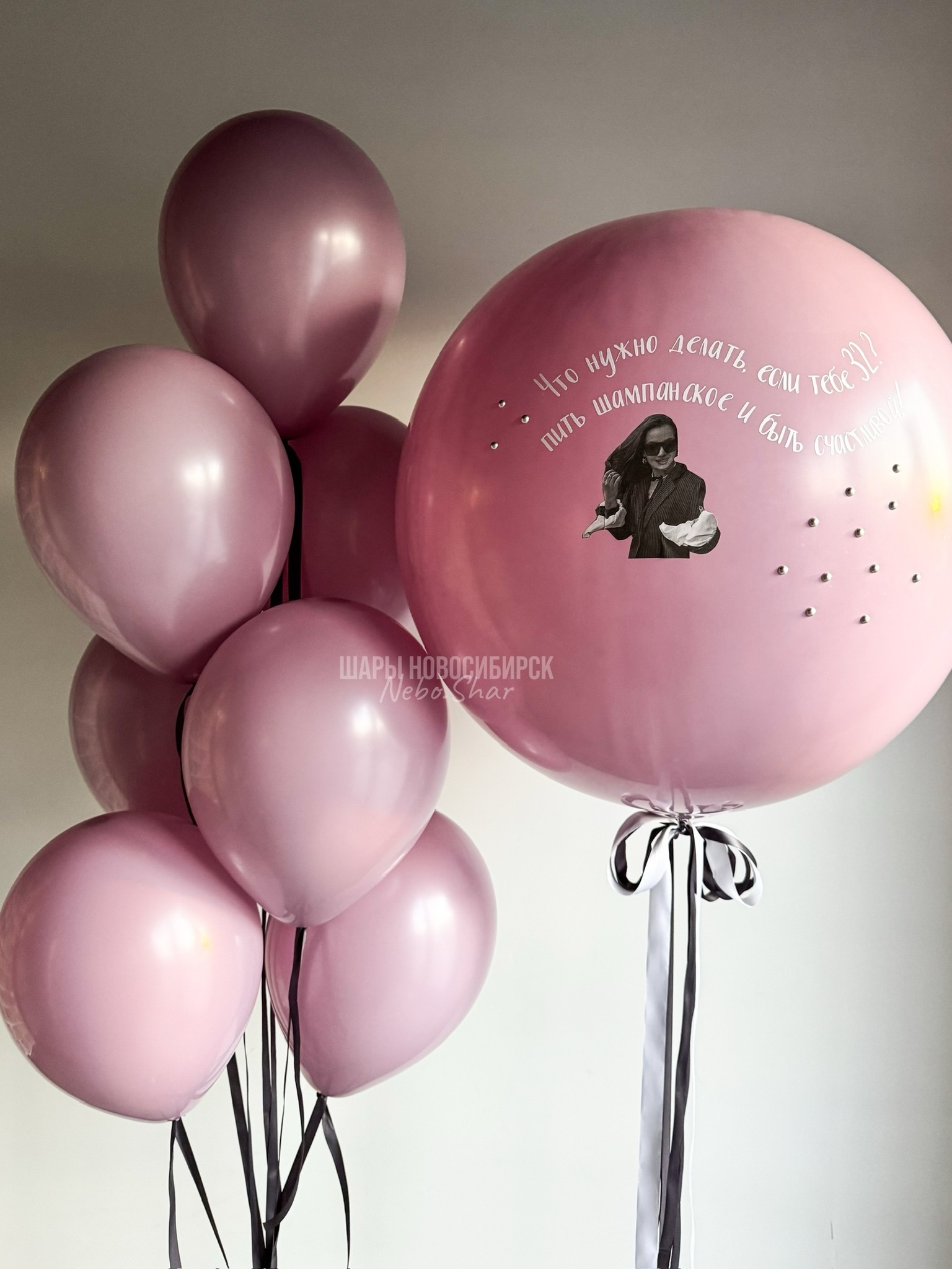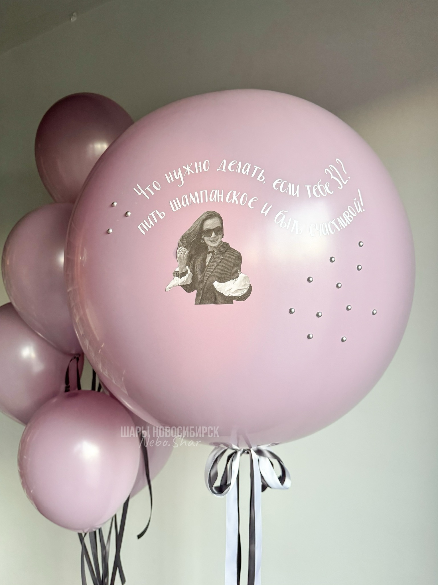 Латексный шар лаванда 60 см с фото и надписью