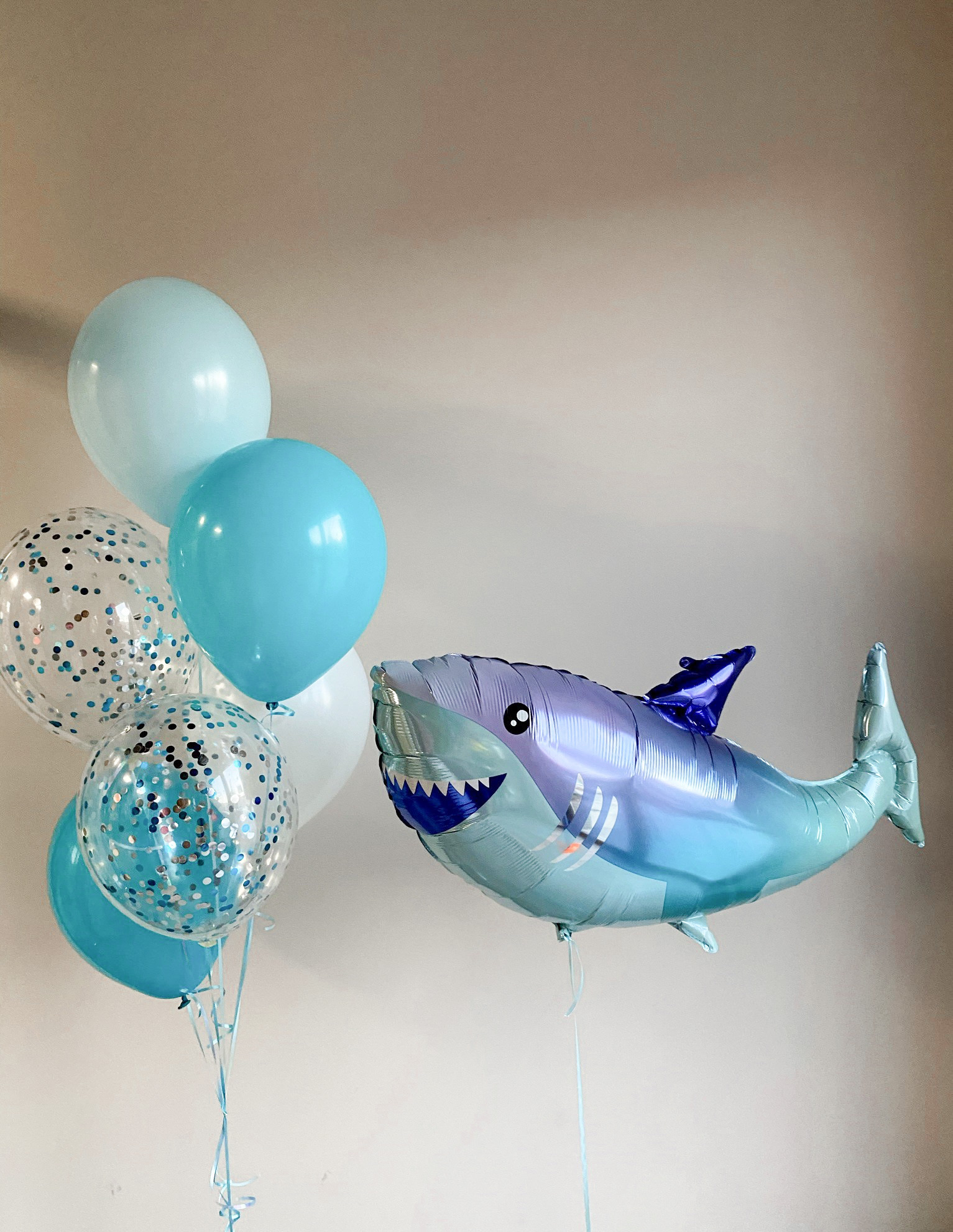 - Фонтан из 5 шаров: 2 с конфетти и 3 однотонных