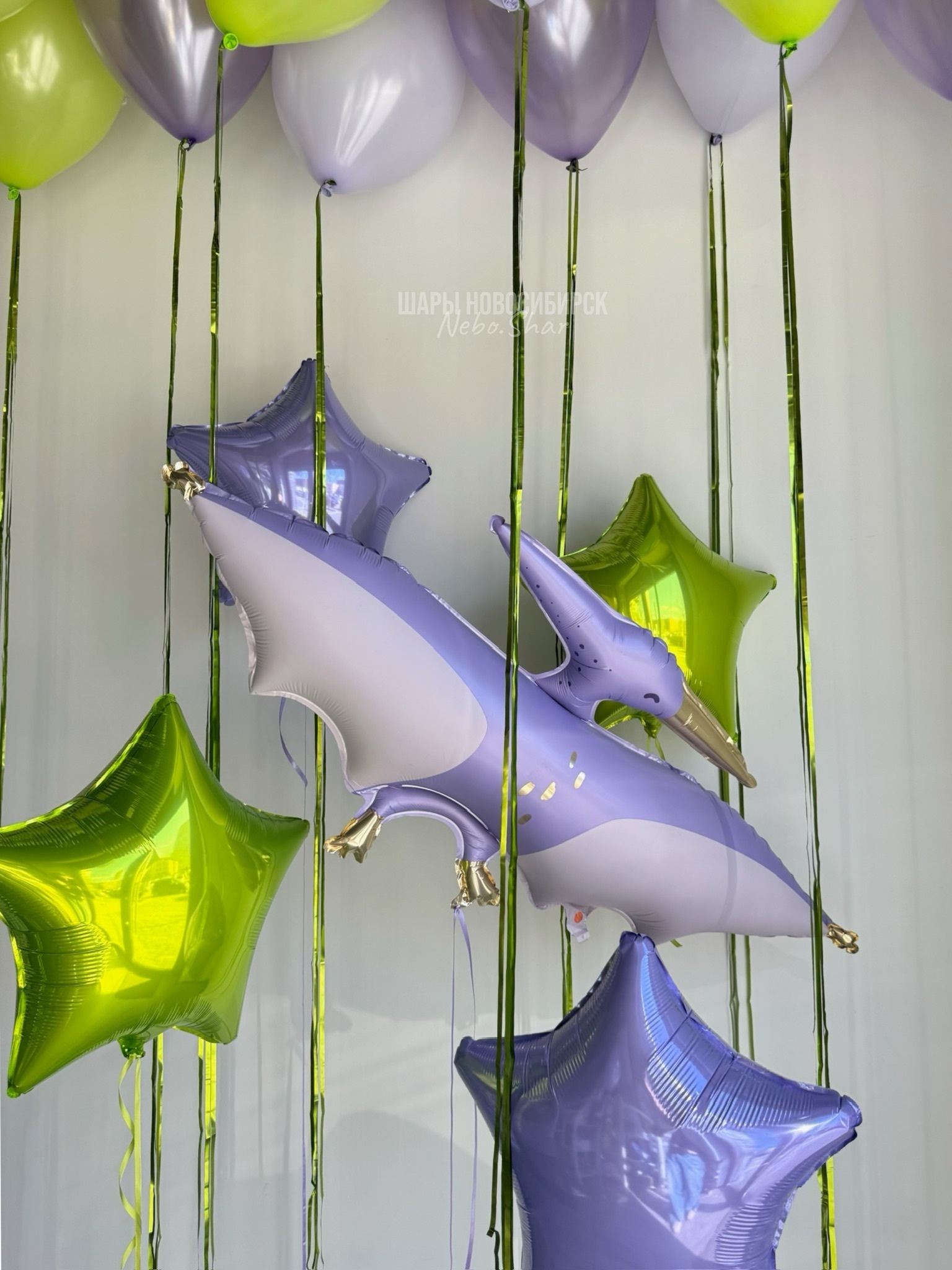 12 Шаров под потолок на дождике (4 яблоко, 4 сиреневый макарунс, 4 сиреневый перламутр)
