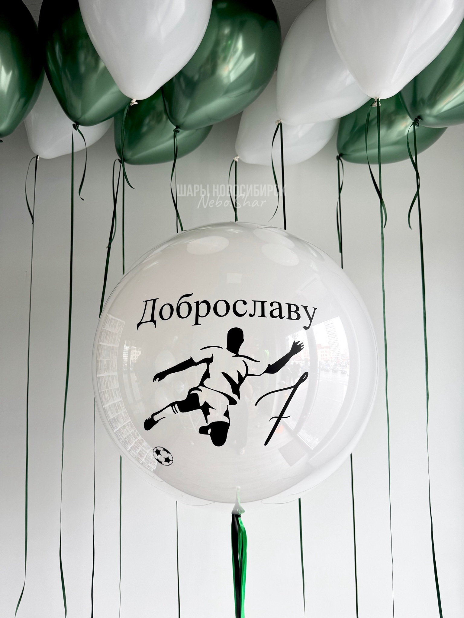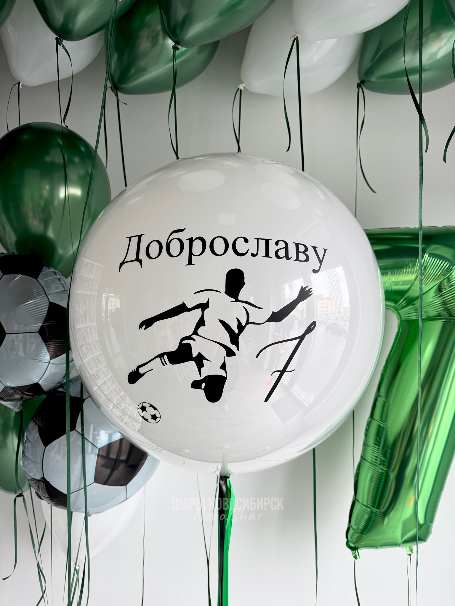 Фонтан из 6 шаров (2 футбольных мяча, 2 хром изумруд, 2 белых)