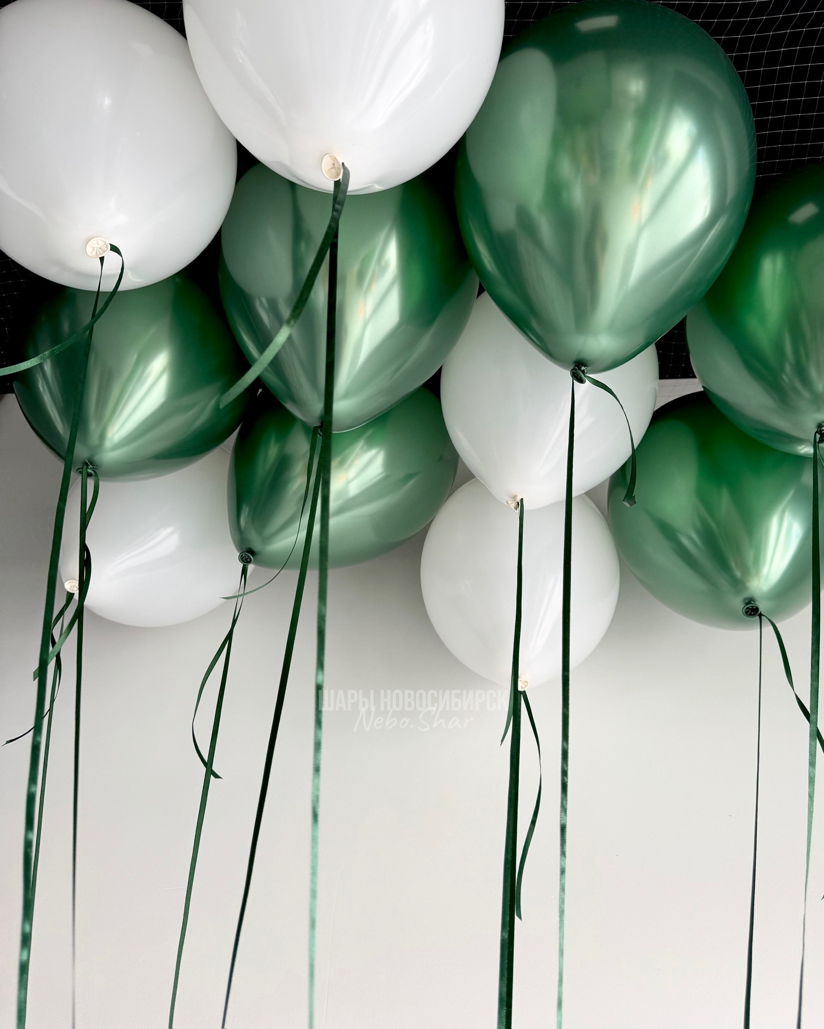 11 Шаров под потолок (6 хром изумруд, 5 белых)