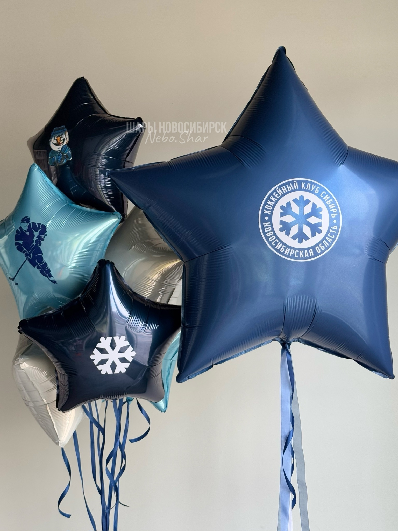 Фонтан из 6 звезд 45 см (2 темно-синих, 2 голубых, 2 белых)