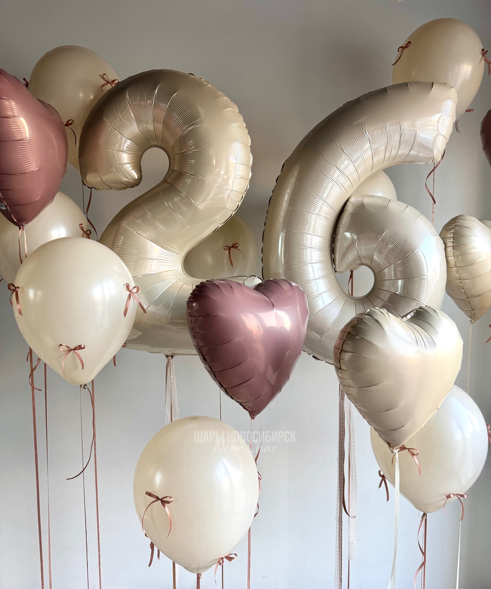 8 латексных Шаров с бантиками по всему шару на индивидуальных грузиках