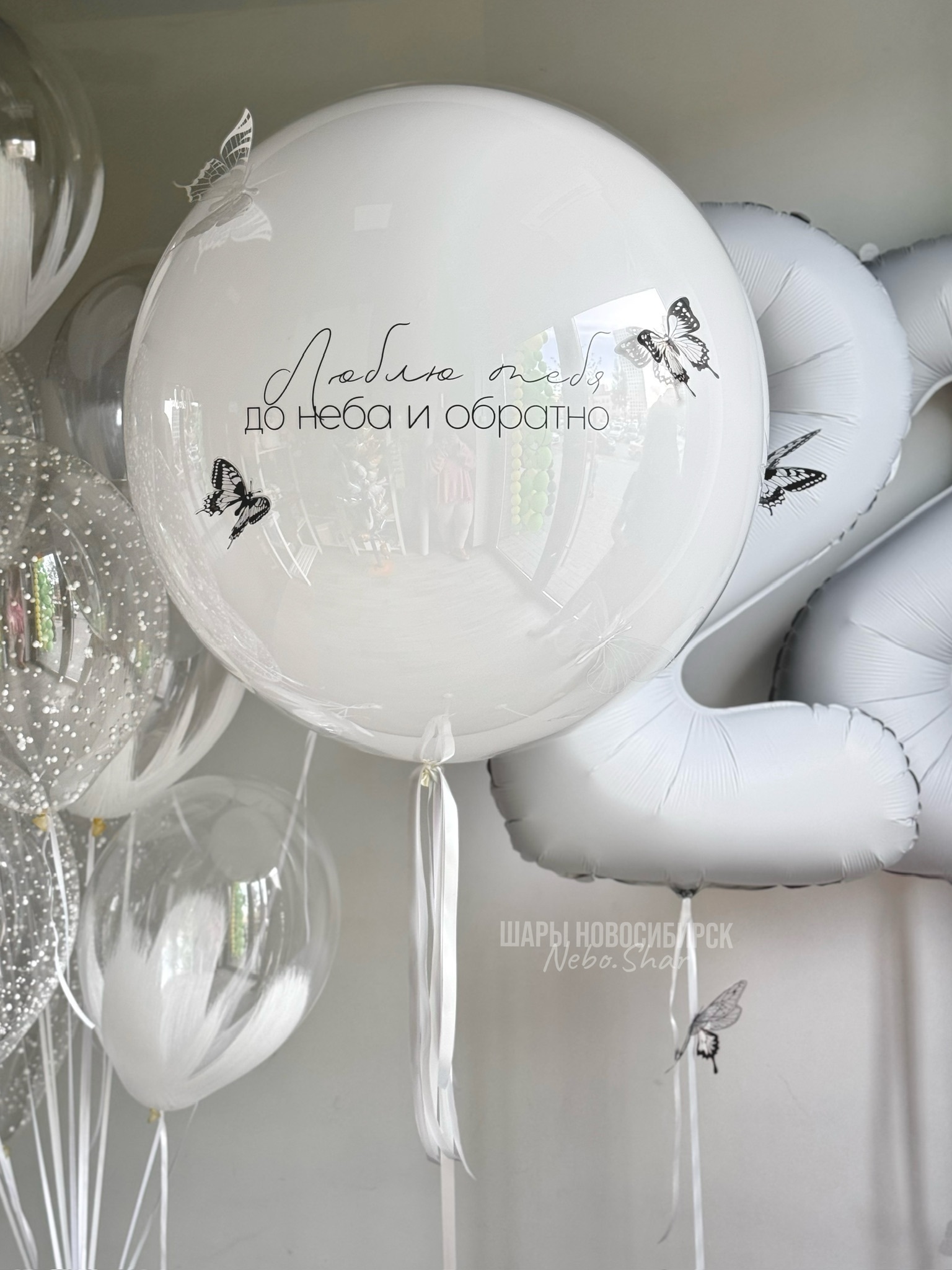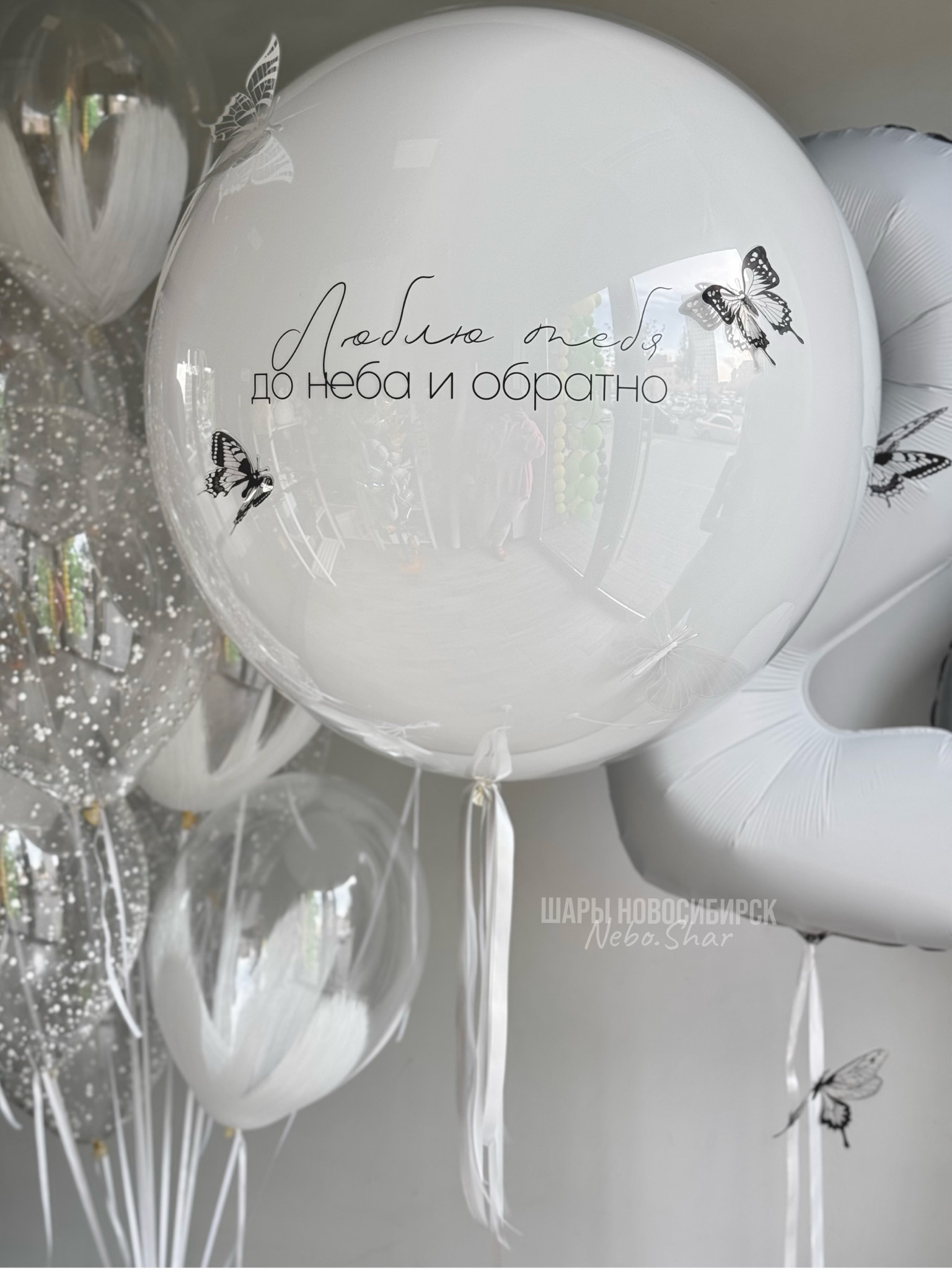 Фонтан из 12 шаров (6 белая браш, 6 прозрачных с белым пенопластом)