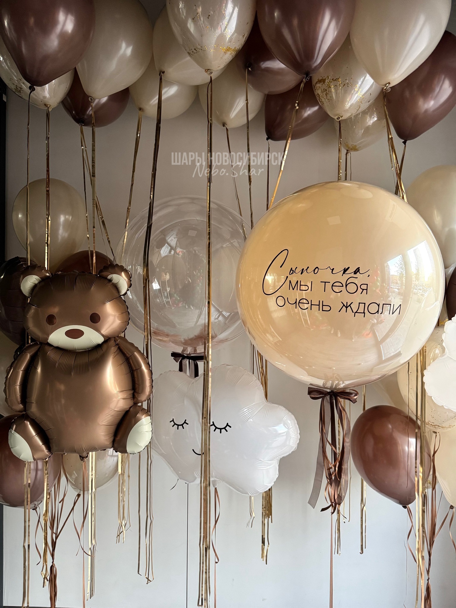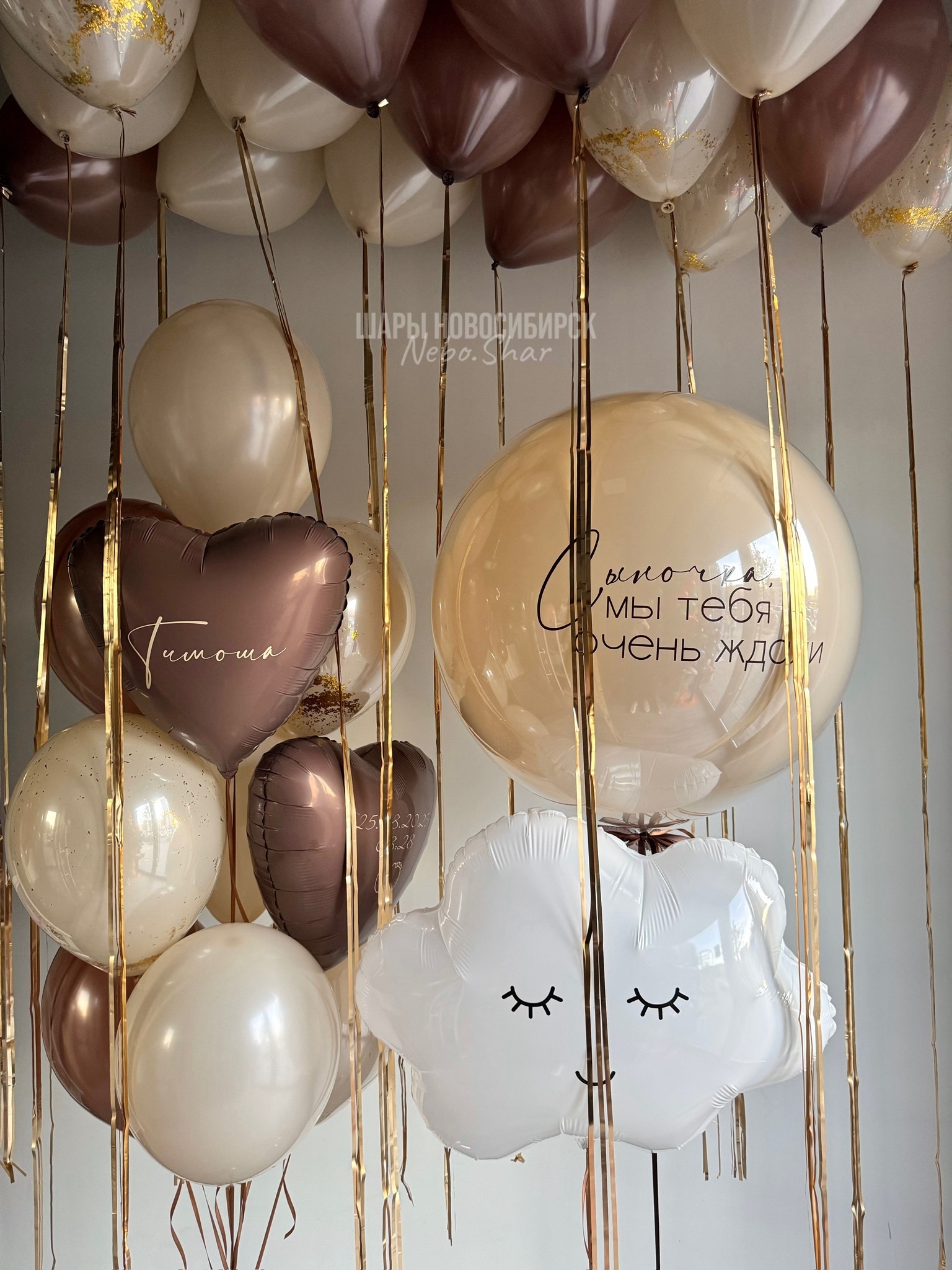 15 Шаров под потолок на дождике (5 белый песок, 5 шоколад, 5 белый песок дабл стафф)