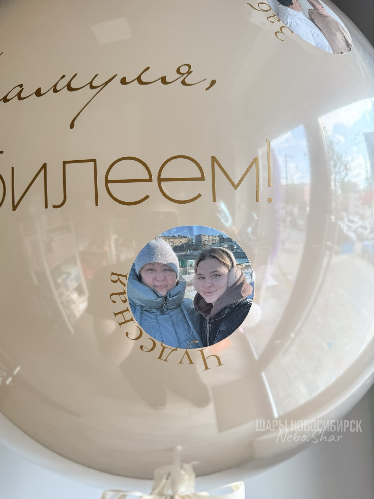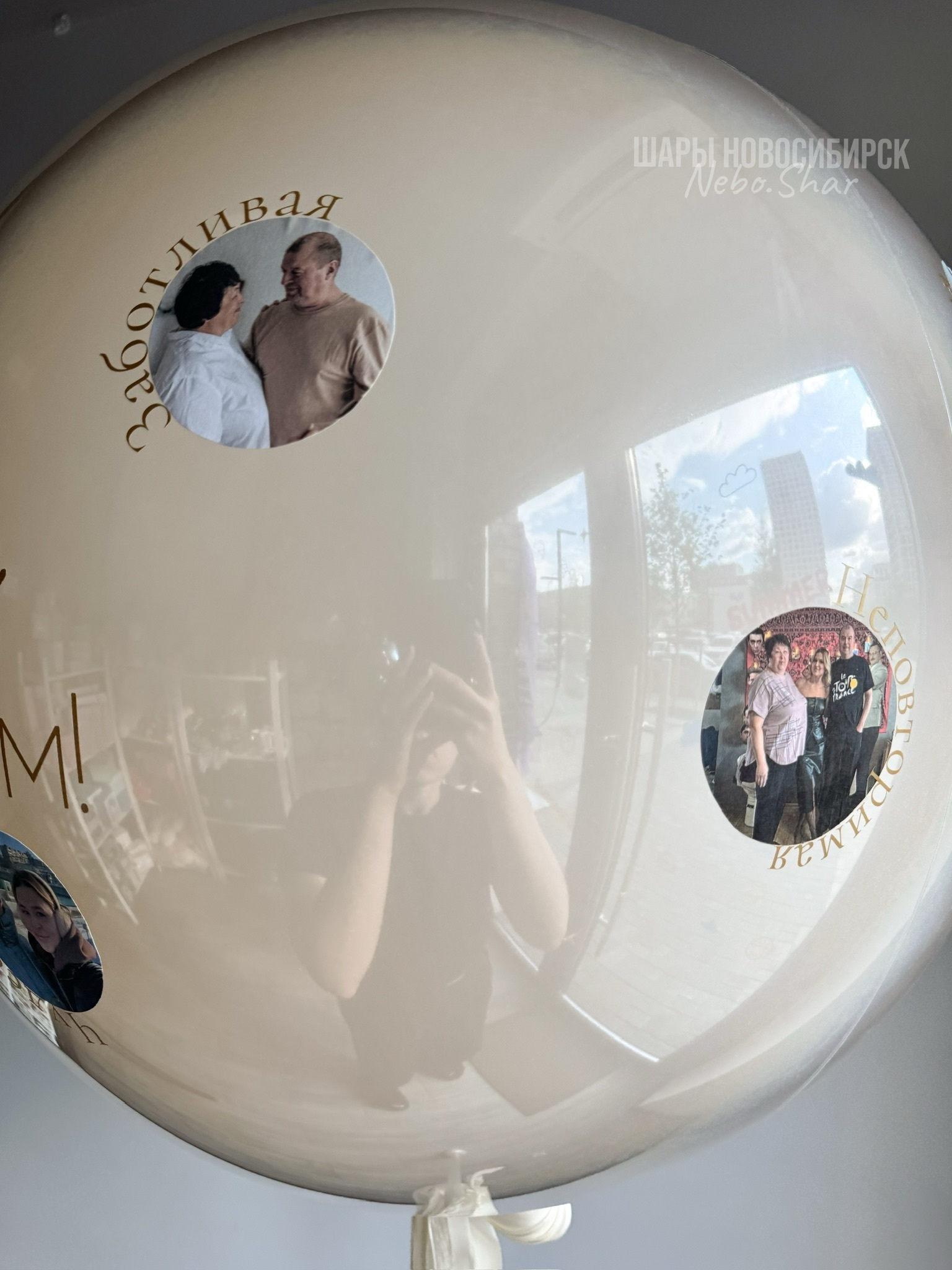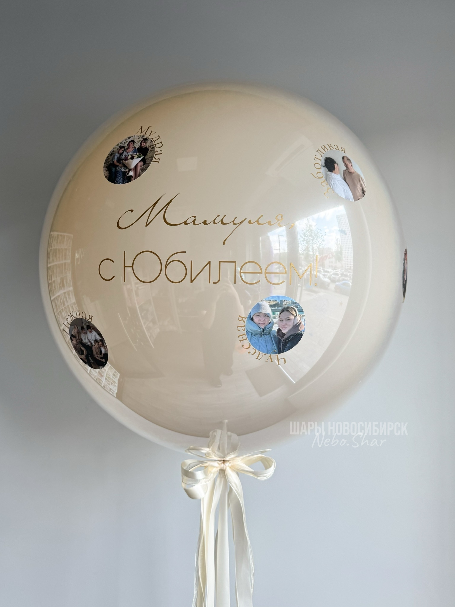 Стеклянный шар белый песок 60 см с надписью и фото по всему шару