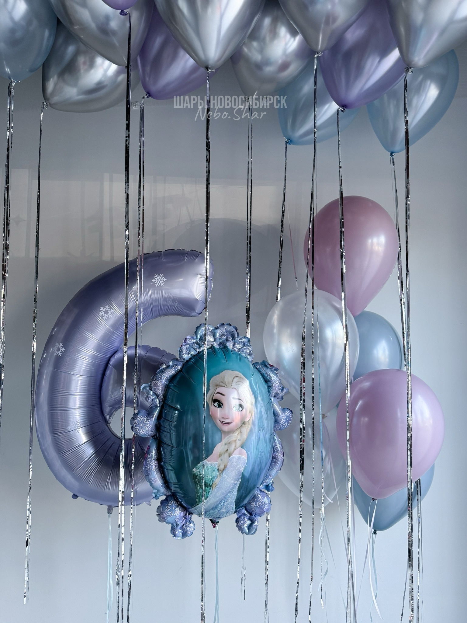 Фонтан из 6 шаров (2 жемчужный перламутр, 2 лаванда, 2 ретро голубой)