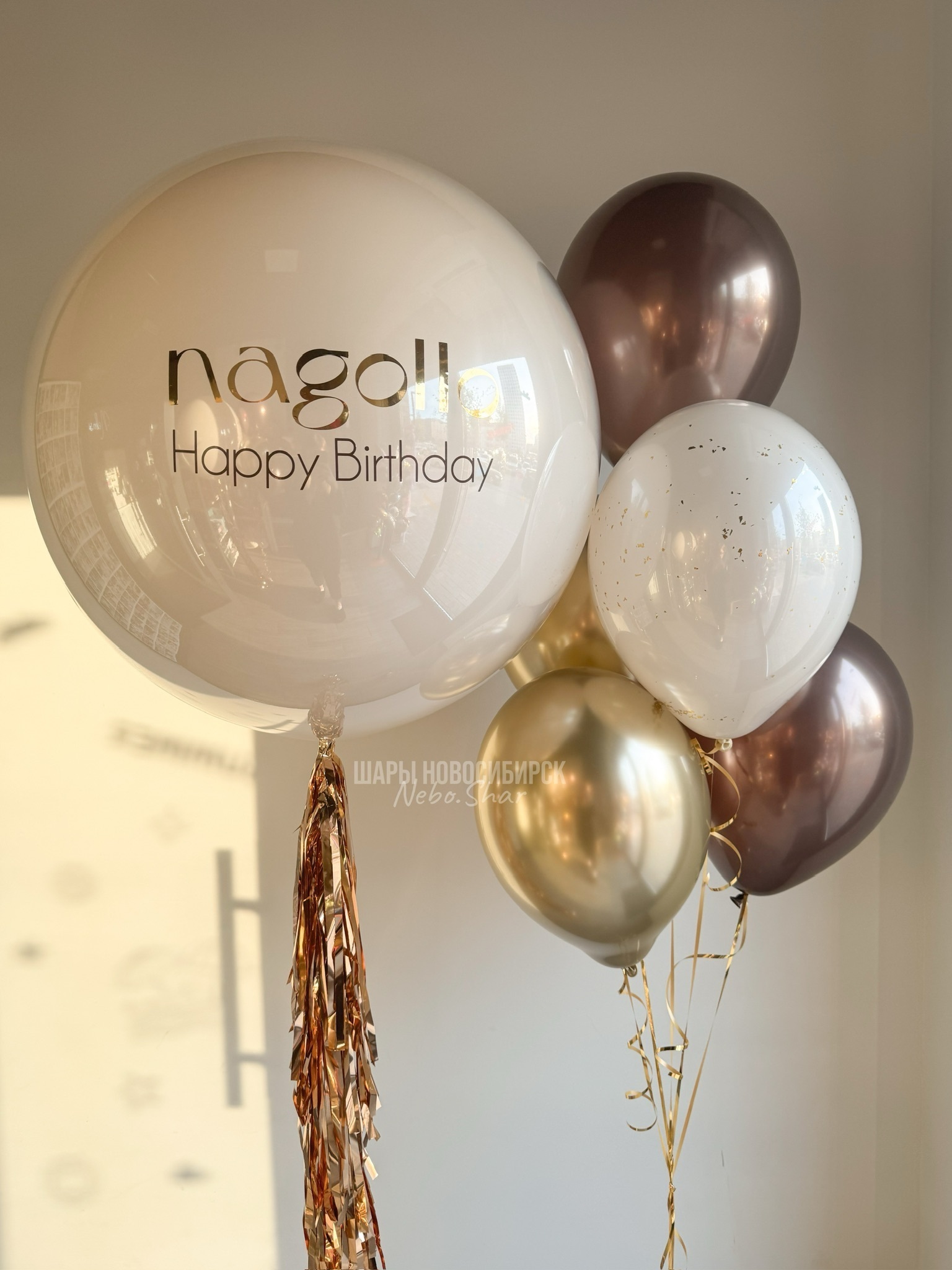 Фонтан из 5 шаров (2 хром трюфель, 2 хром золото, 1 крем дабл Стафф)