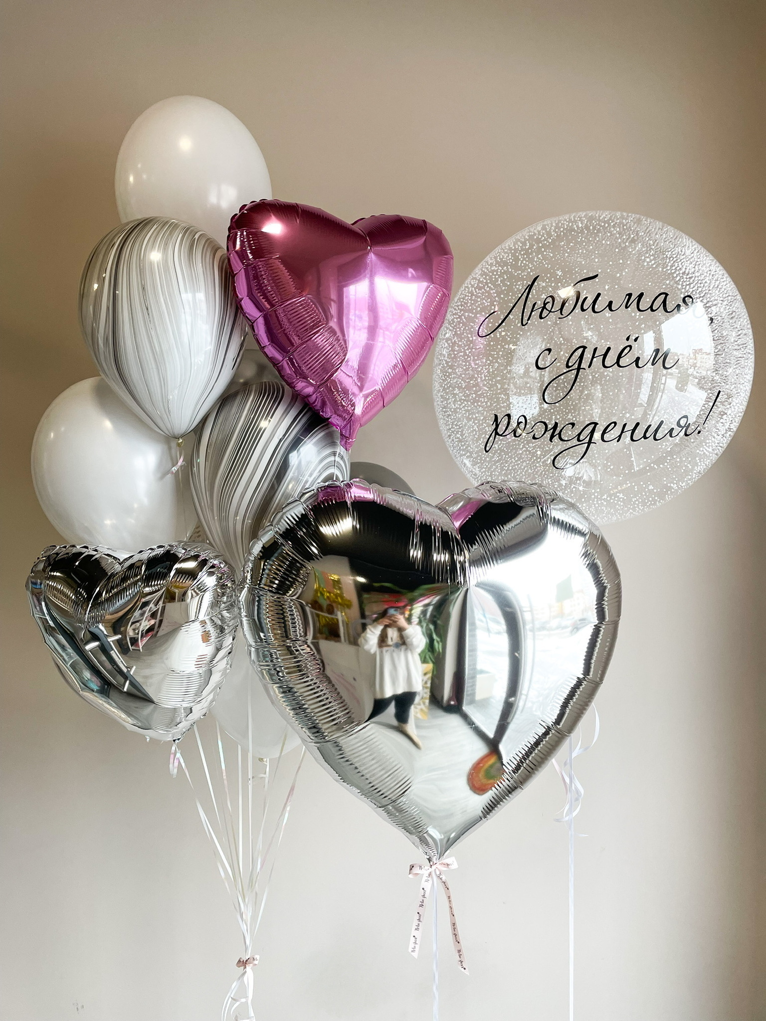 Данный набор возможен с изменением цветовой гаммы, количеством шаров, добавлением индивидуальной надписи:)