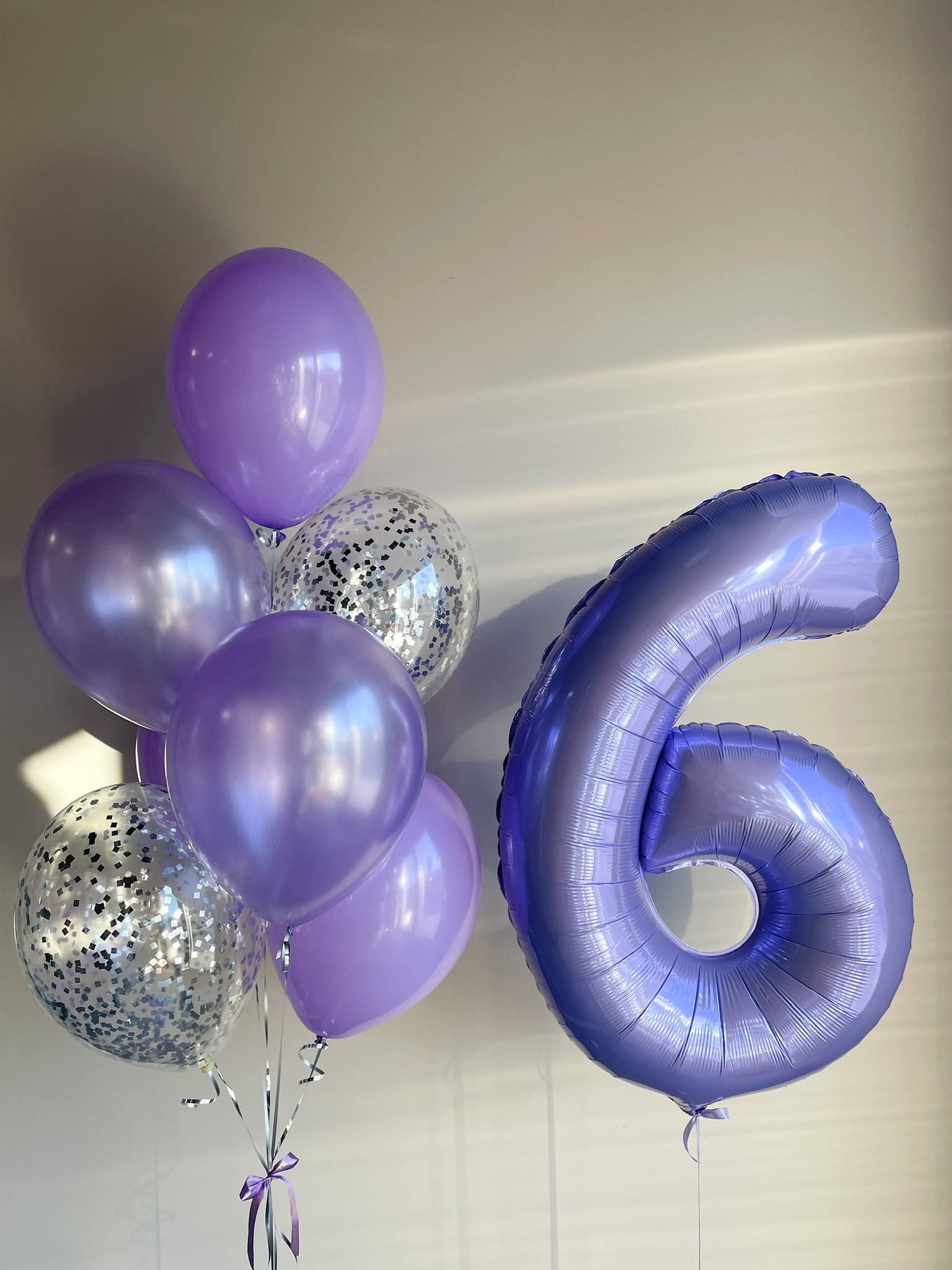 - Фонтан из 7 шаров: 2 с конфетти и 5 однотонных