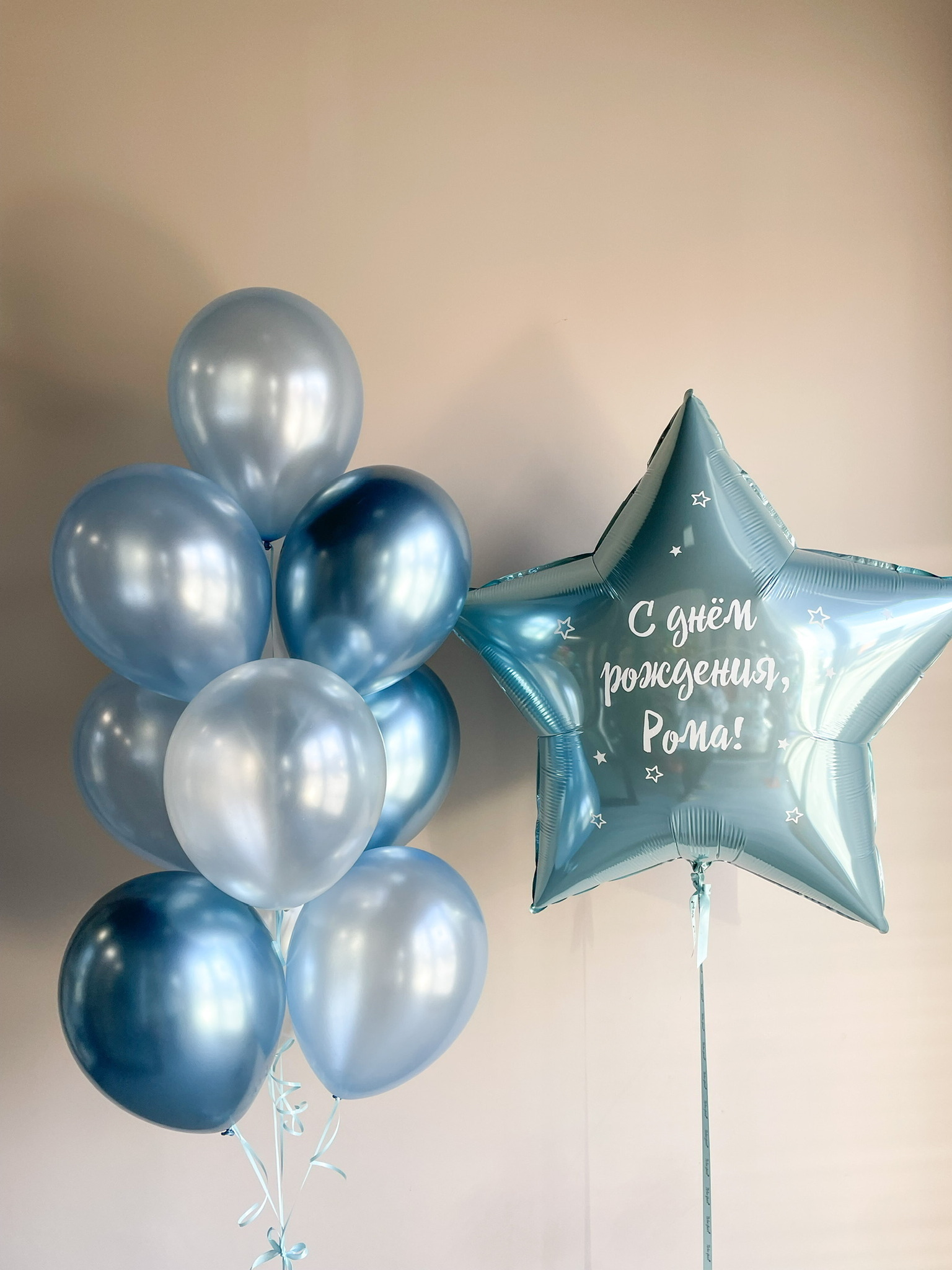 Звезда голубая 90 см с надписью
