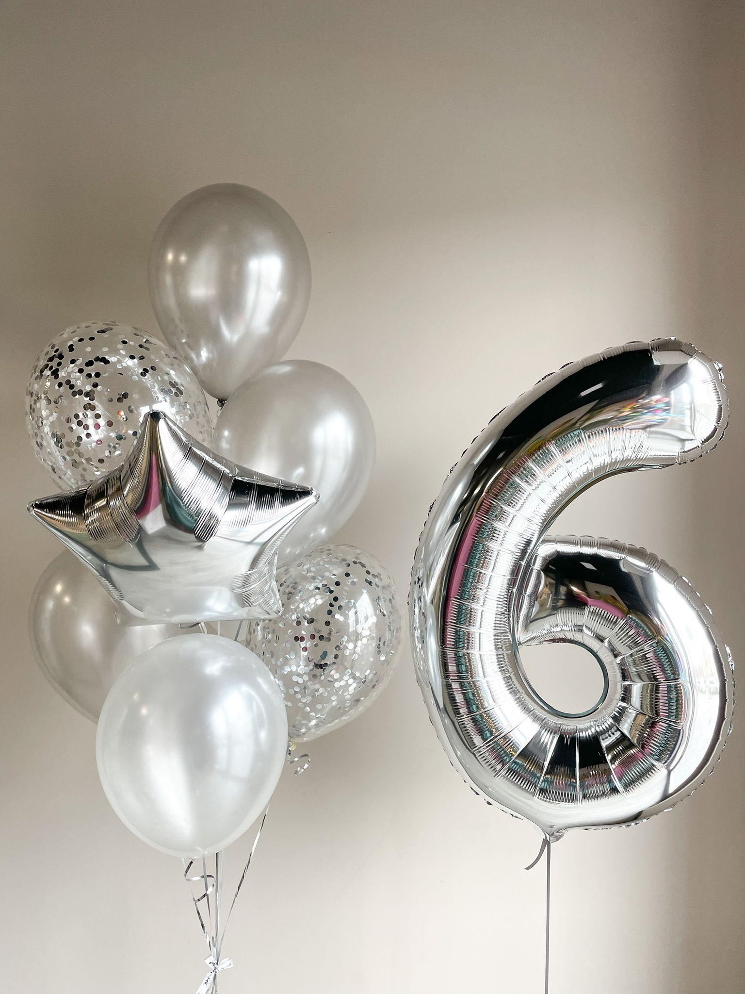 - Фонтан из 8 шаров: звезда, 2 с конфетти и 5 однотонных