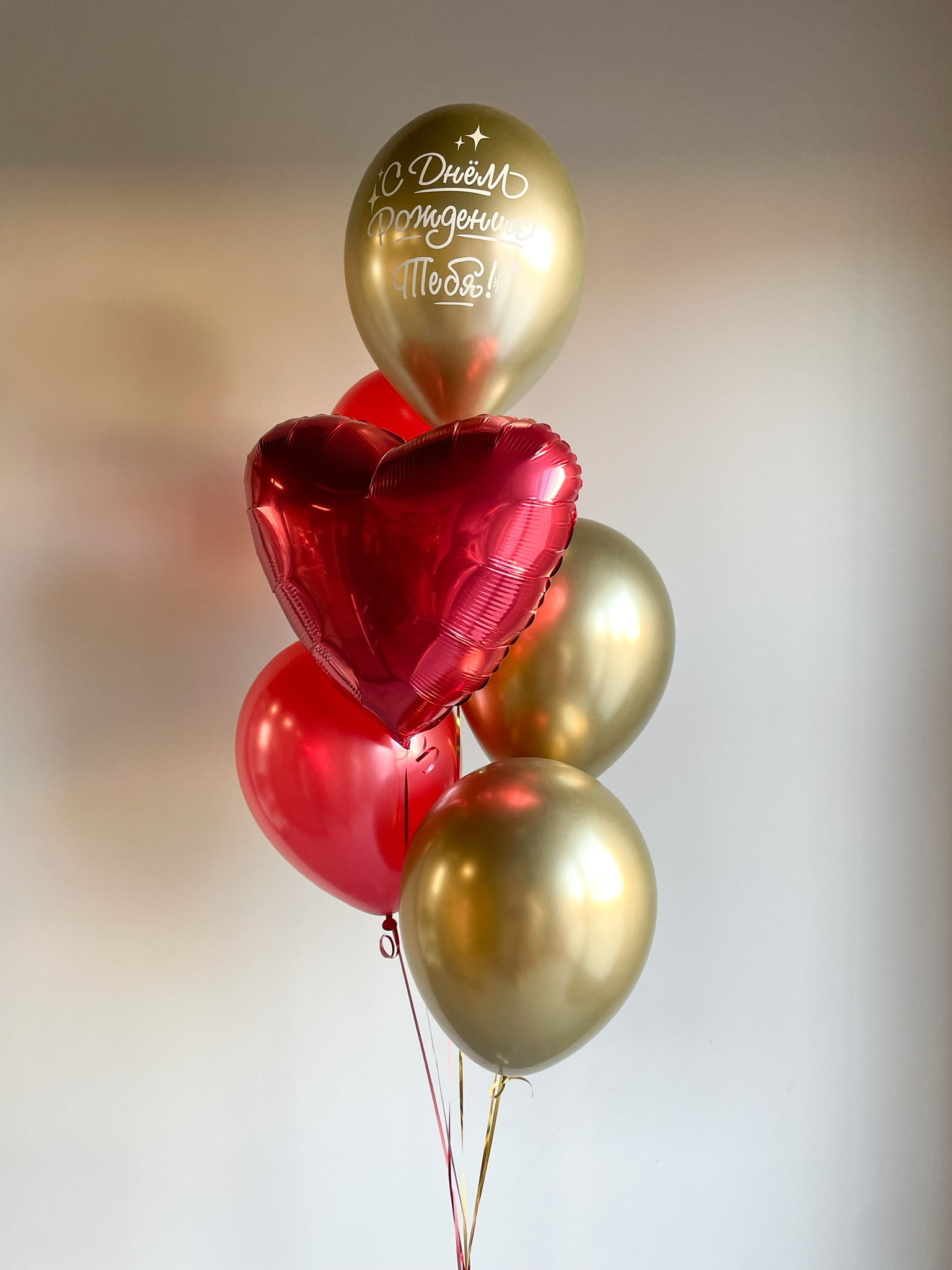 - Фонтан из 6 шаров: сердце, 1 хром с надписью, 2 хром и 2 однотонных