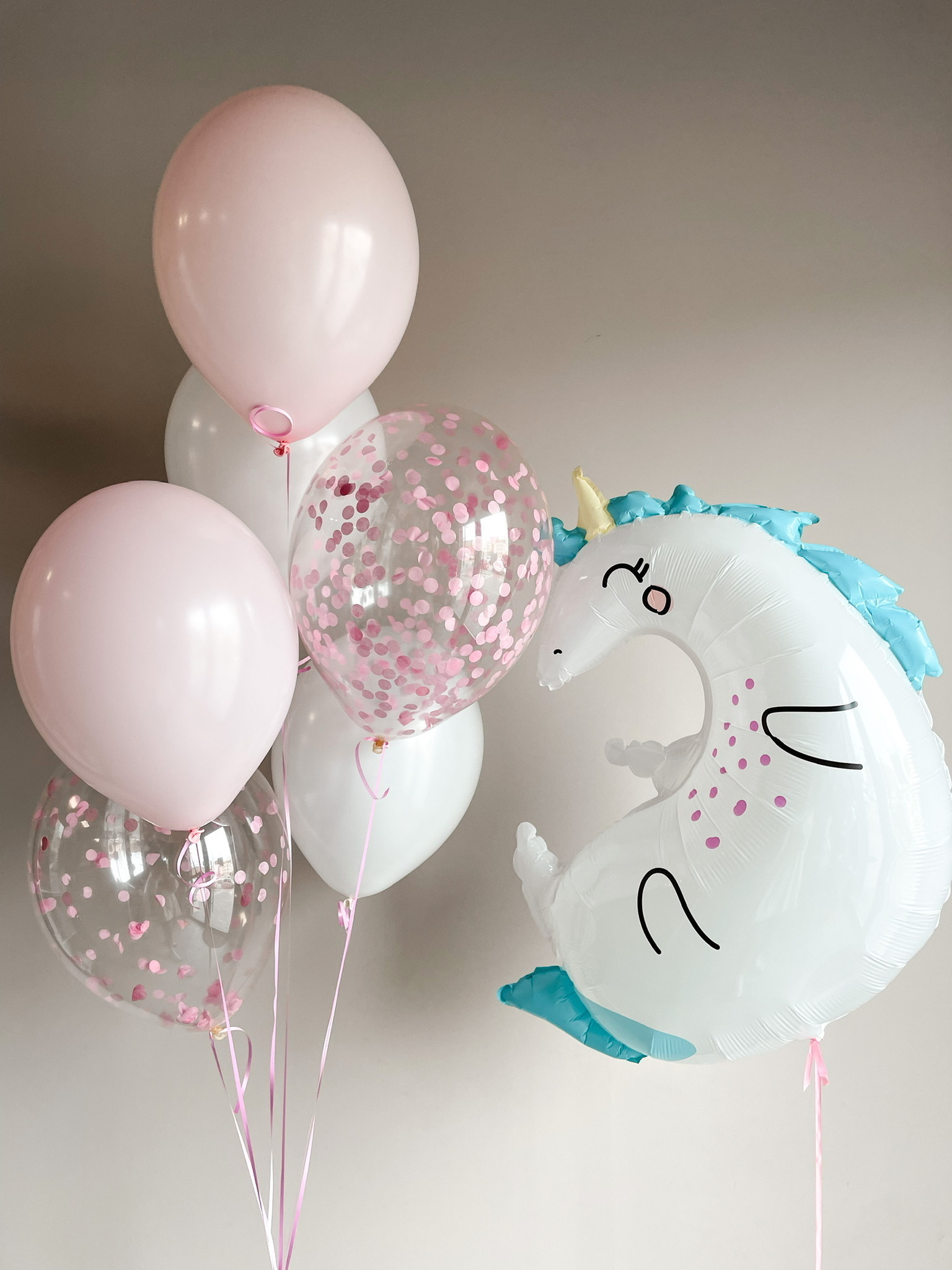 - Фонтан из 6 шаров: 2 с конфетти, 4 однотонных
