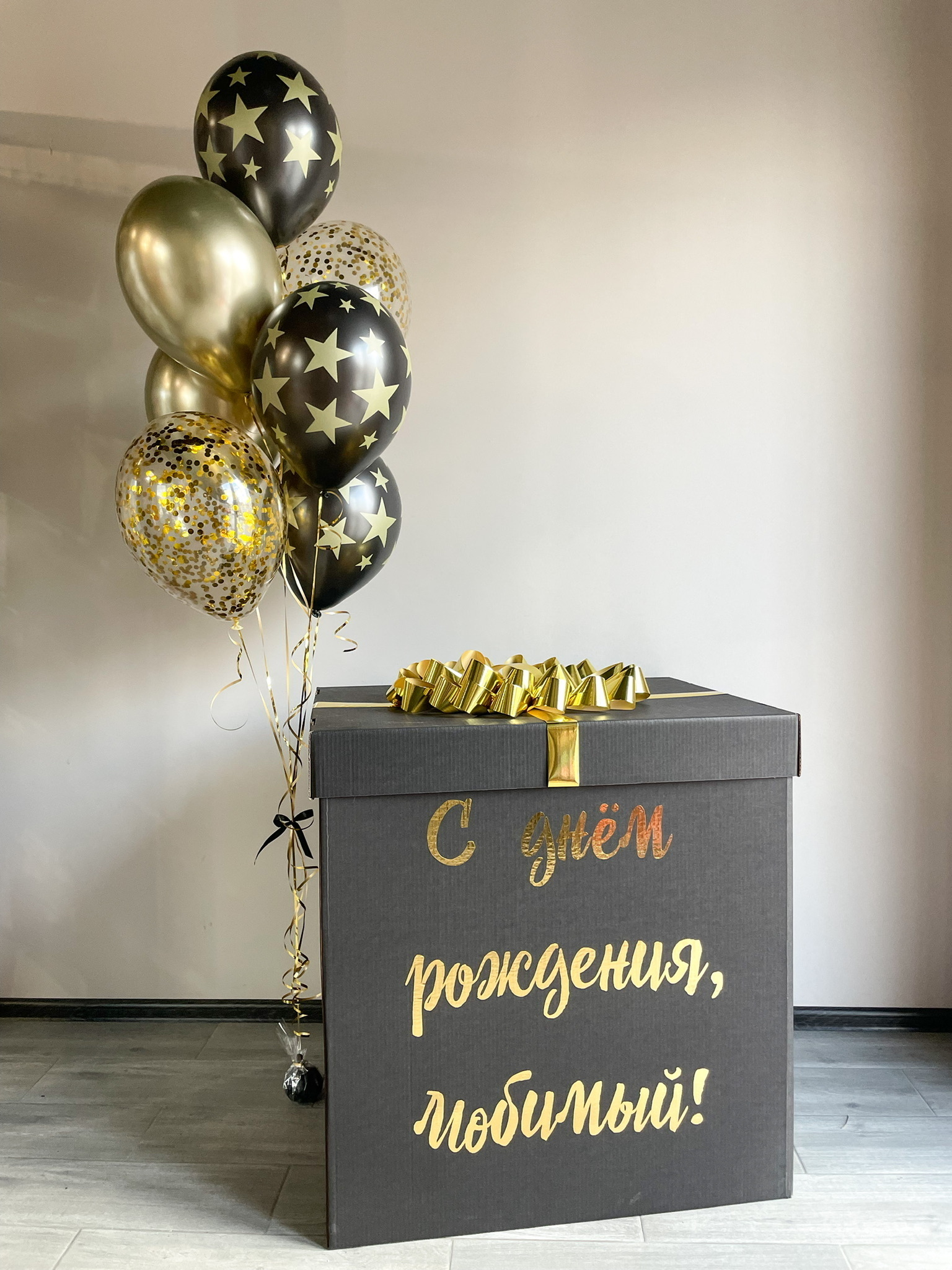 - Коробка с бантом и индивидуальной надписью