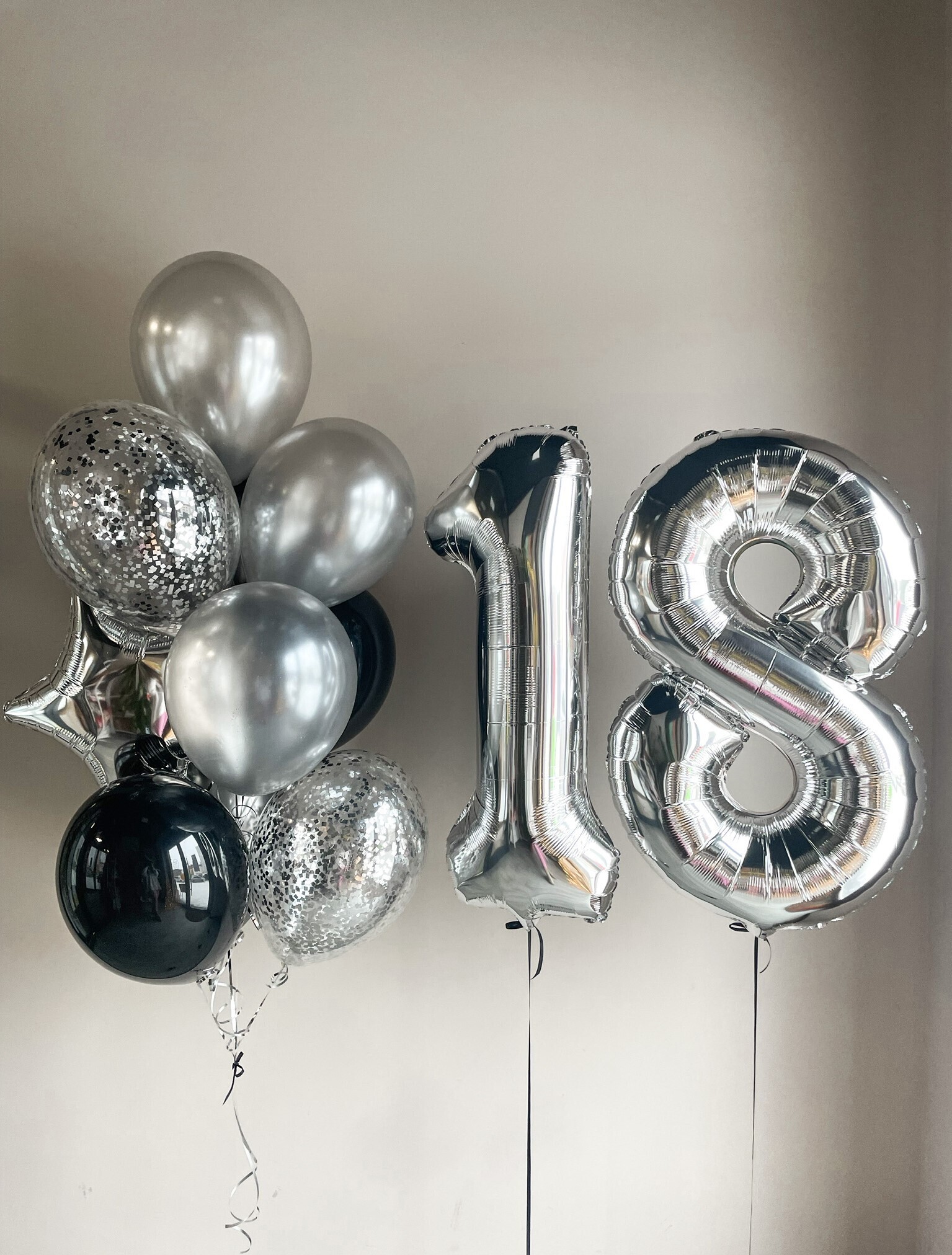- Фонтан из 10 шаров: звезда, 2 с конфетти, 7 однотонных.