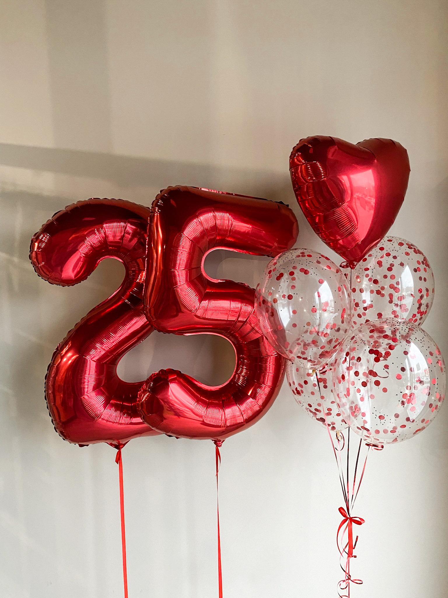 - Фонтан из 5 шаров: сердце, 4 с конфетти