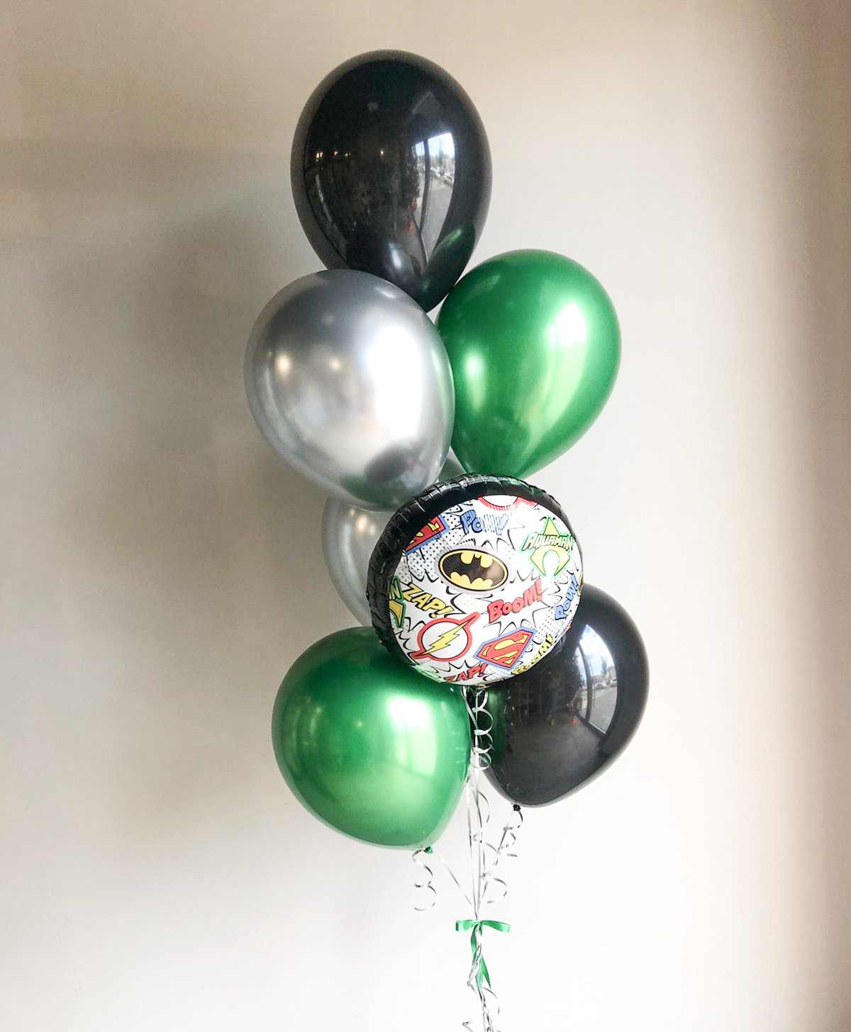 - Фонтан из 7 шаров: круг Супергерои, 4 хром и 2 однотонных